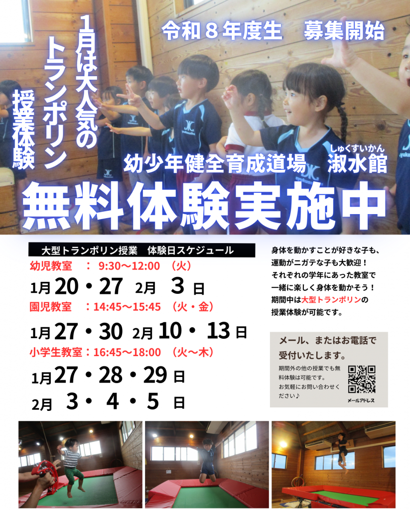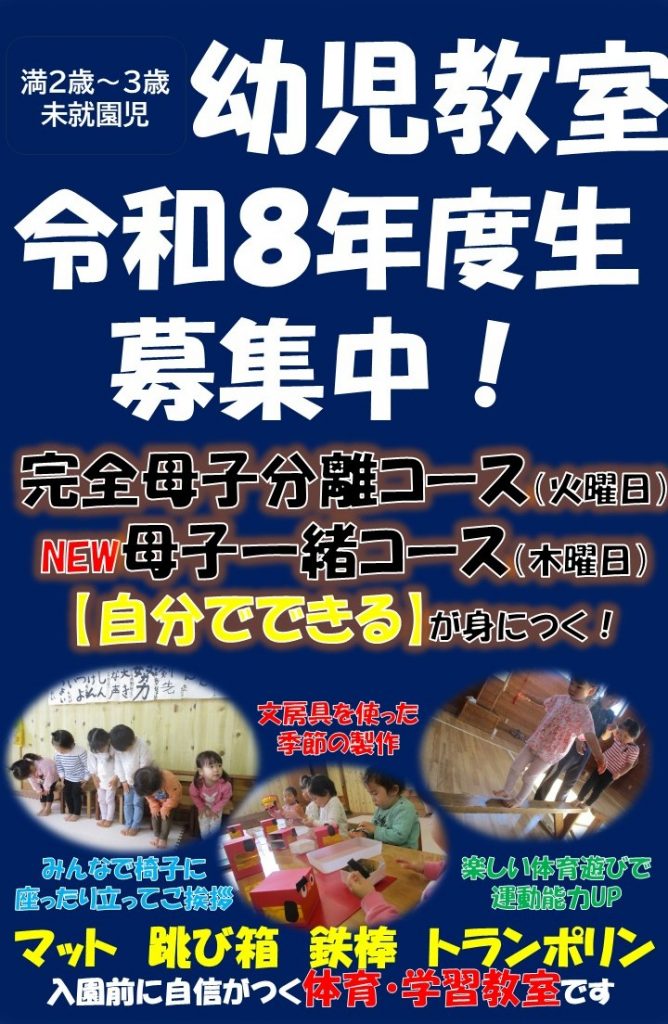 ☆おしらせ☆ 最終更新日 12/24 ☆令和8年度募集要領掲載開始☆ ※入会受付は1/26より 各ページ令和8年度開講予定クラス掲載中 【入会案内】令和8年度掲載中 【剣道教室】秋季大会入賞しました! 【野球教室】新規開講! ※1月の親子ひろばは28日です※