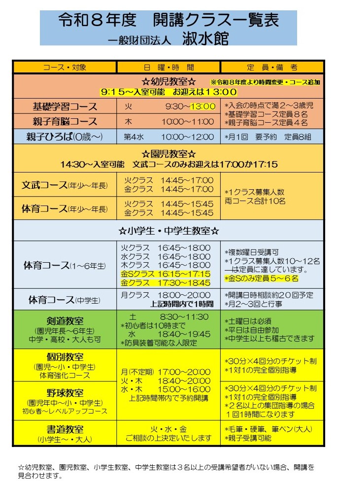 ①園児教室文武コースは体育と学習の合計2時間となります。